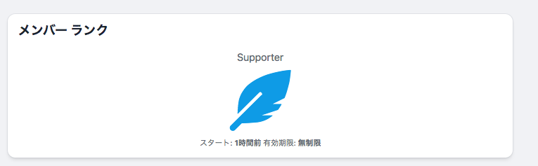 画像の様に、メンバーランクが「Supporter」羽のバッチが付きます。